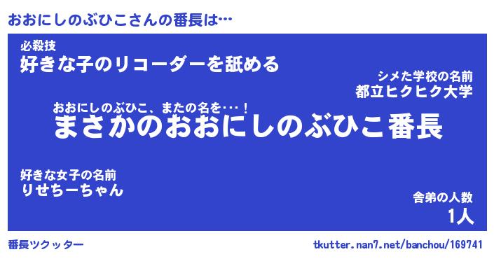 | 男性向けラノベタイトル風あだ名 | 『おおにしのぶひこの憂鬱』 |
