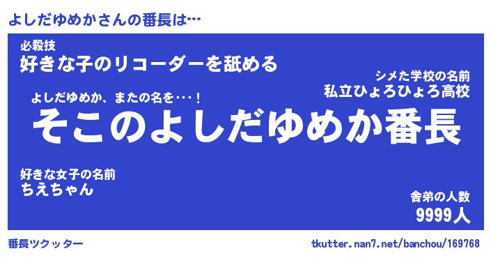 | 肩書あだ名 | 『よしだゆめか店長』 |