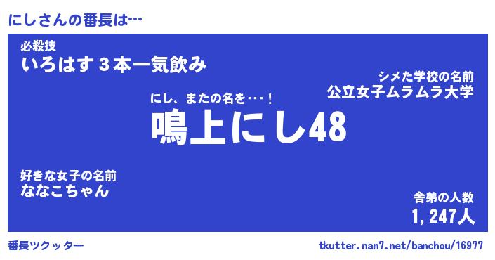 | ピコ太郎風あだ名 | 『ニコ六郎』『ピニ十郎』『ニシ八郎』 |