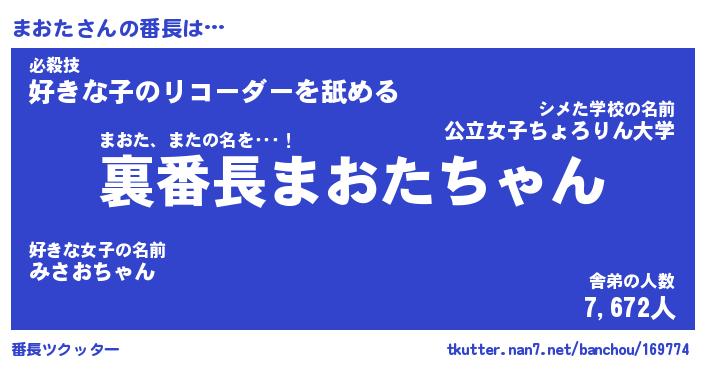 | 意味不明あだ名 | 『ペロリンまおた』『まおたフォーエバー』 |