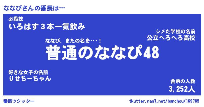 | 肩書あだ名 | 『ななぴ店長』『ななぴ大統領』 |