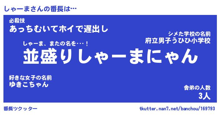 | 意味不明あだ名 | 『ペロリンしゃーま』『永久保存しゃーま』 |