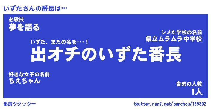 | ポケモン風あだ名 | 『イズチュウ』『イズタダネ』 |