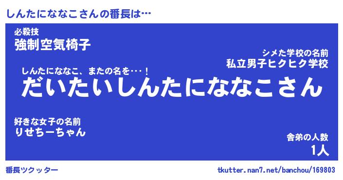 | 男性向けラノベタイトル風あだ名 | 『しんたにななこの憂鬱』 |
