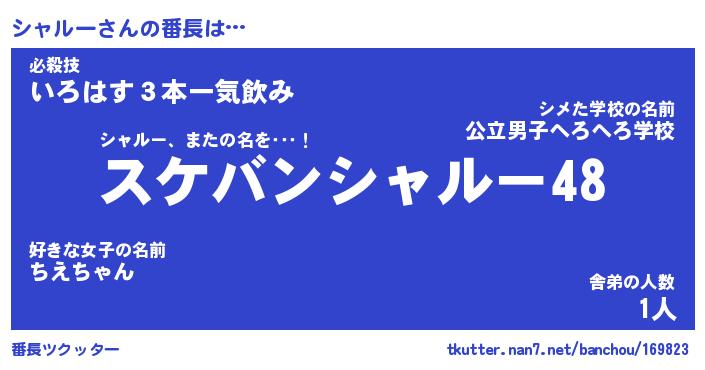 | 意味不明あだ名 | 『ペロリンシャルー』『永久保存シャルー』 |