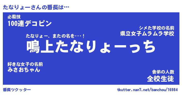 | ヒーロー風カッコイイあだ名 | 『スーパータナリョー』『黄金騎士タナ』 |
