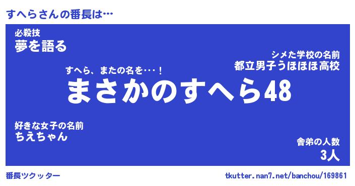 | 意味不明あだ名 | 『ペロリンすへら』『すへらフォーエバー』 |