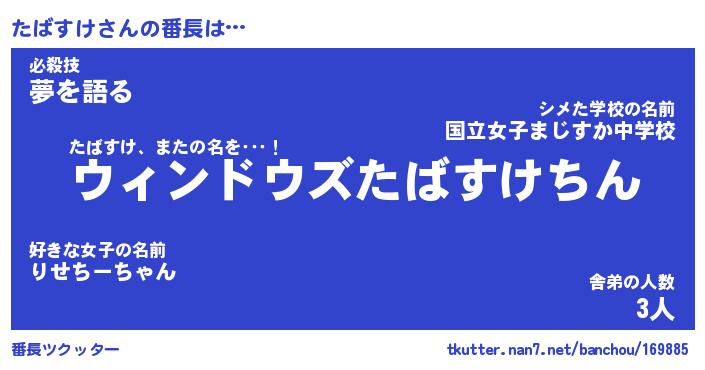 | 意味不明あだ名 | 『ペロリンたばすけ』『永久保存たばすけ』 |
