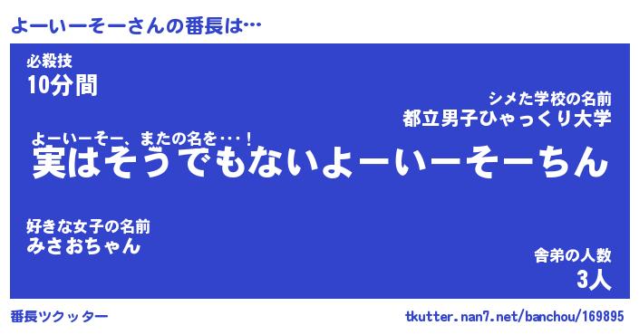 | 伝説のあだ名 | 『封印されしスナイパーよーいーそー』 |