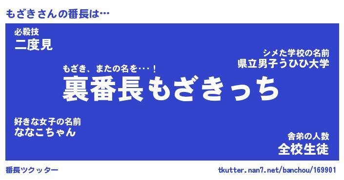 | ヘコむあだ名 | 『もざにゅー』『レバニラ』『もざを』 |