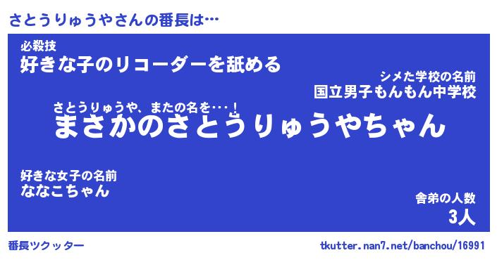 | 意味不明あだ名 | 『ペロリンさとうりゅうや』 |