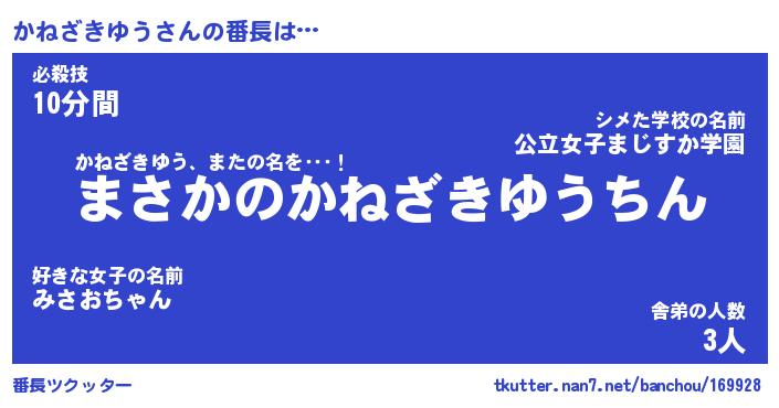 | ヒーロー風カッコイイあだ名 | 『スーパーカネザキユウ』『暗黒騎士カネ』 |