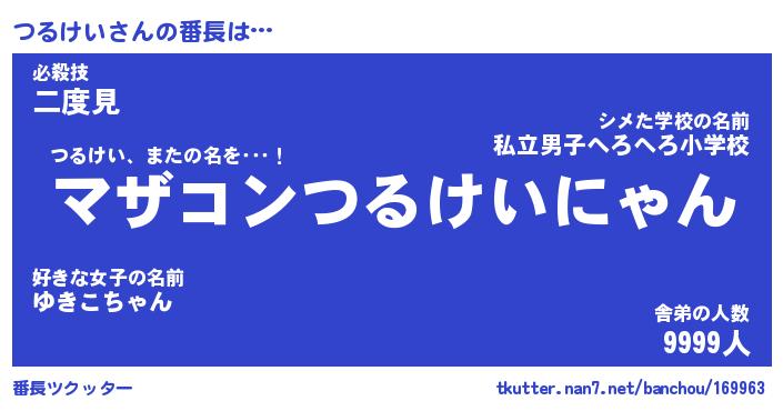 | 意味不明あだ名 | 『ペロリンつるけい』『永久保存つるけい』 |