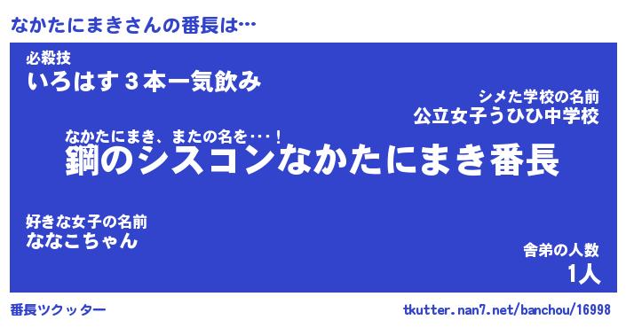 | 伝説のあだ名 | 『封印されしスナイパーなかたにまき』 |