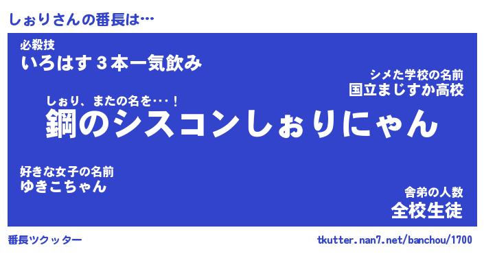 | 肩書あだ名 | 『しぉり社長令嬢』『しぉり国家主席』 |