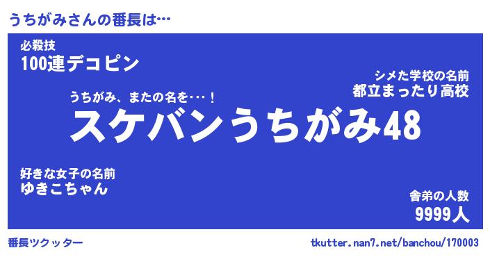 | 肩書あだ名 | 『うちがみ社長』『うちがみ総理大臣』 |