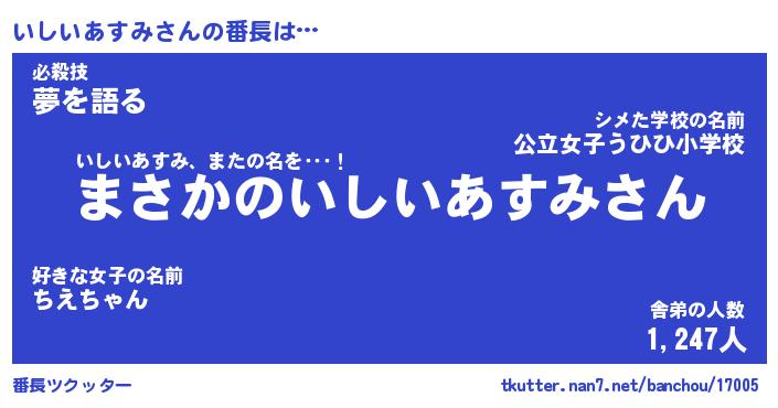 | 男性向けラノベタイトル風あだ名 | 『いしいあすみの憂鬱』 |