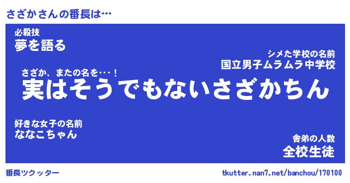 | 肩書あだ名 | 『さざか社長』『さざか総理大臣』 |