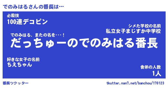 | ヘコむあだ名 | 『でのにー』『豆乳』『での太郎』 |