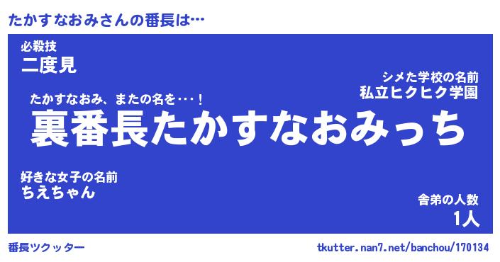 | 男性向けラノベタイトル風あだ名 | 『タカスナオミアートオンライン』 |