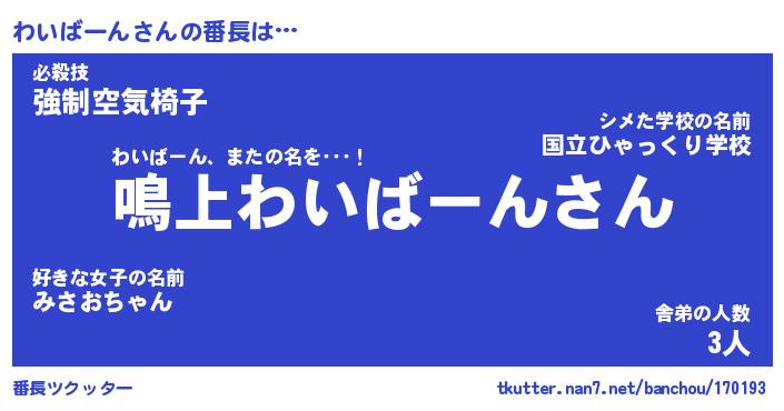 | 肩書あだ名 | 『わいばーん店長』『わいばーん国家主席』 |