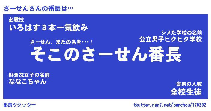 | ヒーロー風カッコイイあだ名 | 『スーパーサーセン』『暗黒騎士サー』 |