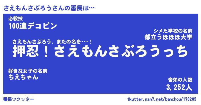 | ヒーロー風カッコイイあだ名 | 『スーパーサエモンサブロウ』 |