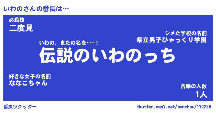 | 2回繰り返すあだ名 | 『いわいわ』『いいわわ』『いらいら』 |