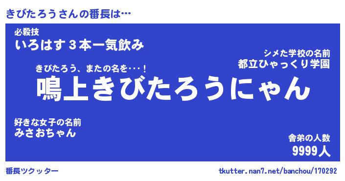 | ヒーロー風カッコイイあだ名 | 『スーパーキビタロウ』『天弓騎士キビ』 |