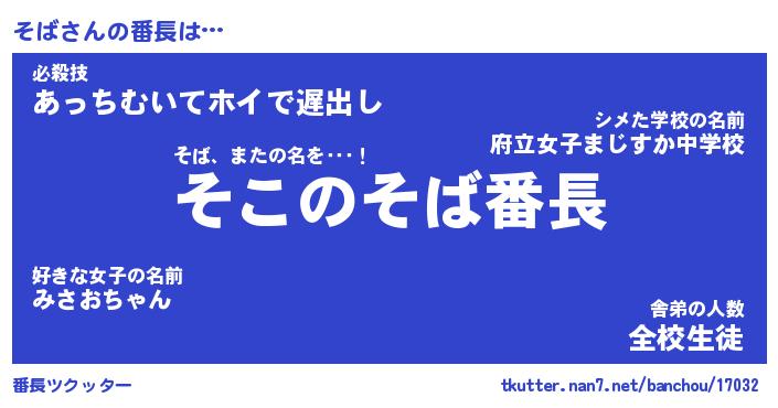 | ポケモン風あだ名 | 『ソバチュウ』『ソバダネ』『ヒソバ』 |