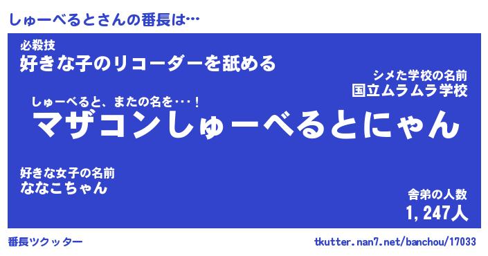 | 肩書あだ名 | 『しゅーべると店長』『しゅーべると班長』 |