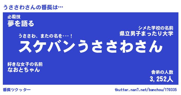 | ヒーロー風カッコイイあだ名 | 『スーパーウササワ』『幻影騎士ウサ』 |
