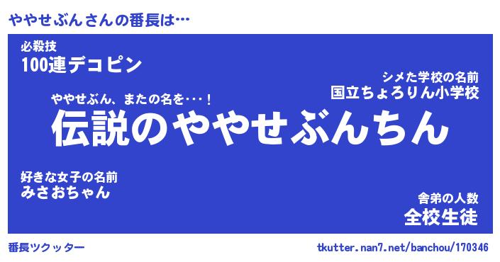 | 伝説のあだ名 | 『伝説のスナイパーややせぶん』 |