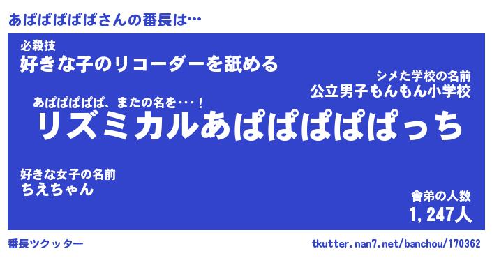 | 2回繰り返すあだ名 | 『あぱあぱ』『ああぱぱ』『ぶらぶら』 |