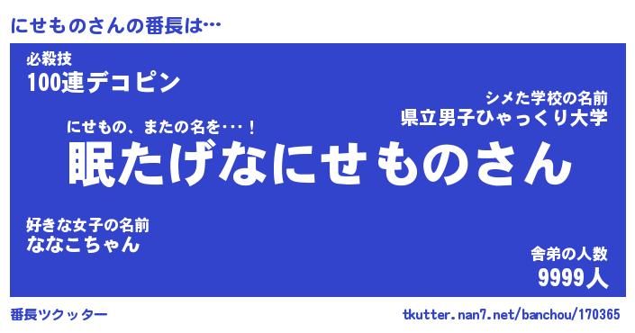 | 2回繰り返すあだ名 | 『にせにせ』『ににせせ』『ぬらぬら』 |