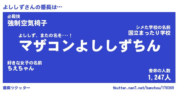 | ポケモン風あだ名 | 『ヨシチュウ』『ヨシシダネ』 |