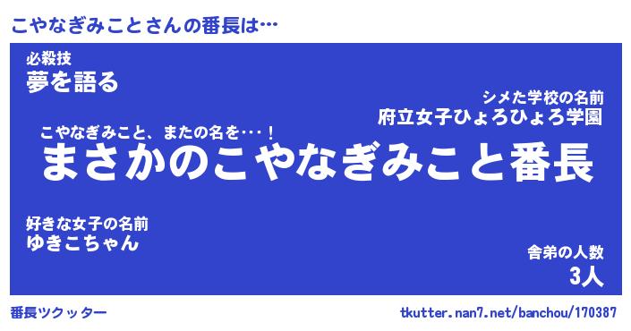 | 恥ずかしいあだ名 | 『プリティーこやなぎみこと』『こやちん』 |