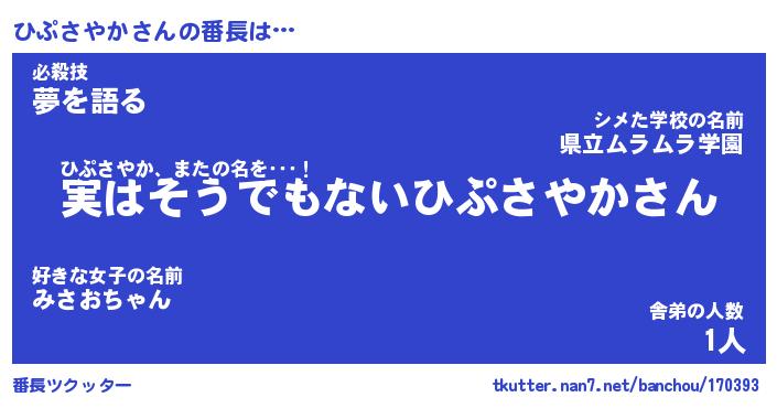 | ピコ太郎風あだ名 | 『ヒコ三郎』『ピヒ八郎』『ヒプ四郎』 |