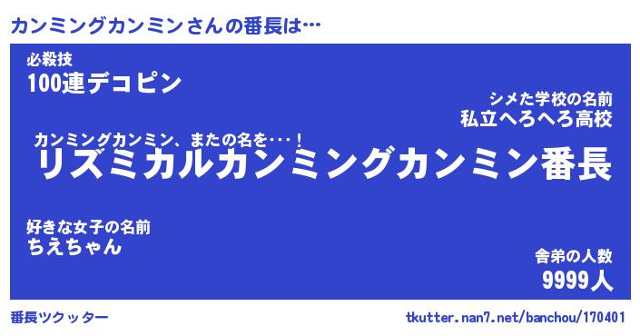 | ヒーロー風カッコイイあだ名 | 『スーパーカンミングカンミン』 |