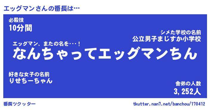 | ヒーロー風カッコイイあだ名 | 『スーパーエッグマン』『幻影騎士エッ』 |