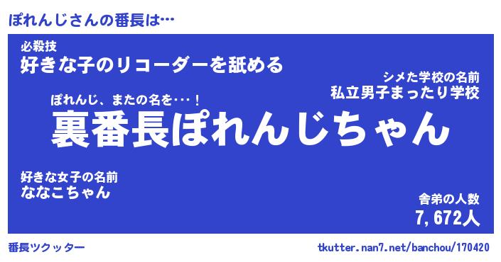 | 意味不明あだ名 | 『ペロリンぽれんじ』『永久保存ぽれんじ』 |