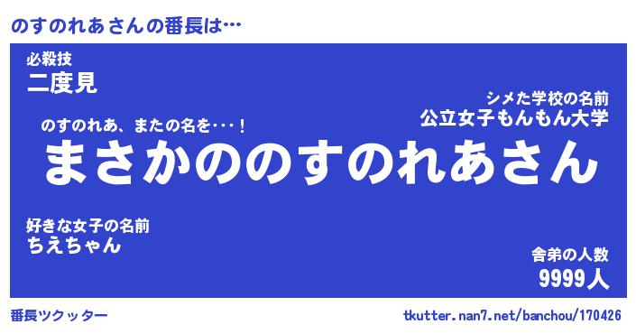 | 2回繰り返すあだ名 | 『のすのす』『ののすす』『ねちねち』 |