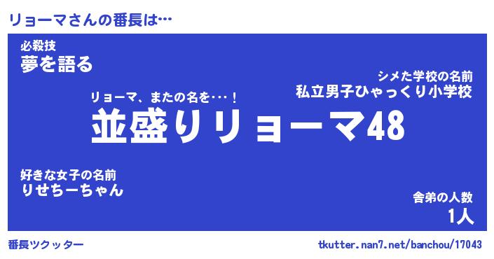 | ヘコむあだ名 | 『リョにー』『なまこ酢』『リョ太郎』 |