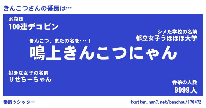 | 意味不明あだ名 | 『ペロリンきんこつ』『永久保存きんこつ』 |