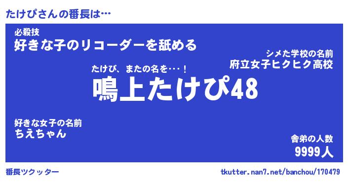 | ヒーロー風カッコイイあだ名 | 『スーパータケピ』『ウルトラたけぴマン』 |