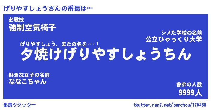 | 肩書あだ名 | 『げりやすしょう店長』 |