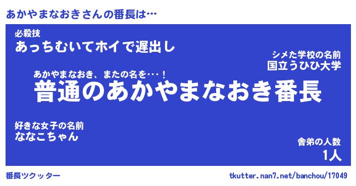 | 男性向けラノベタイトル風あだ名 | 『あかやまなおきの憂鬱』 |