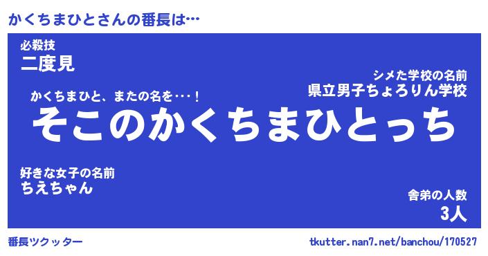 | 男性向けラノベタイトル風あだ名 | 『かくちまひとの憂鬱』 |