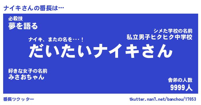 | ヘコむあだ名 | 『ナイもー』『豆乳』『ナイお』 |