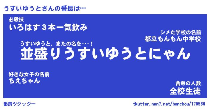 | 男性向けラノベタイトル風あだ名 | 『うすいゆうとの憂鬱』 |